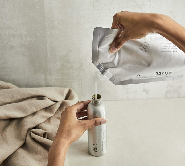 - our everyday shampoo comes in an aluminium bottle which can be refilled and reused, before being recycled.
